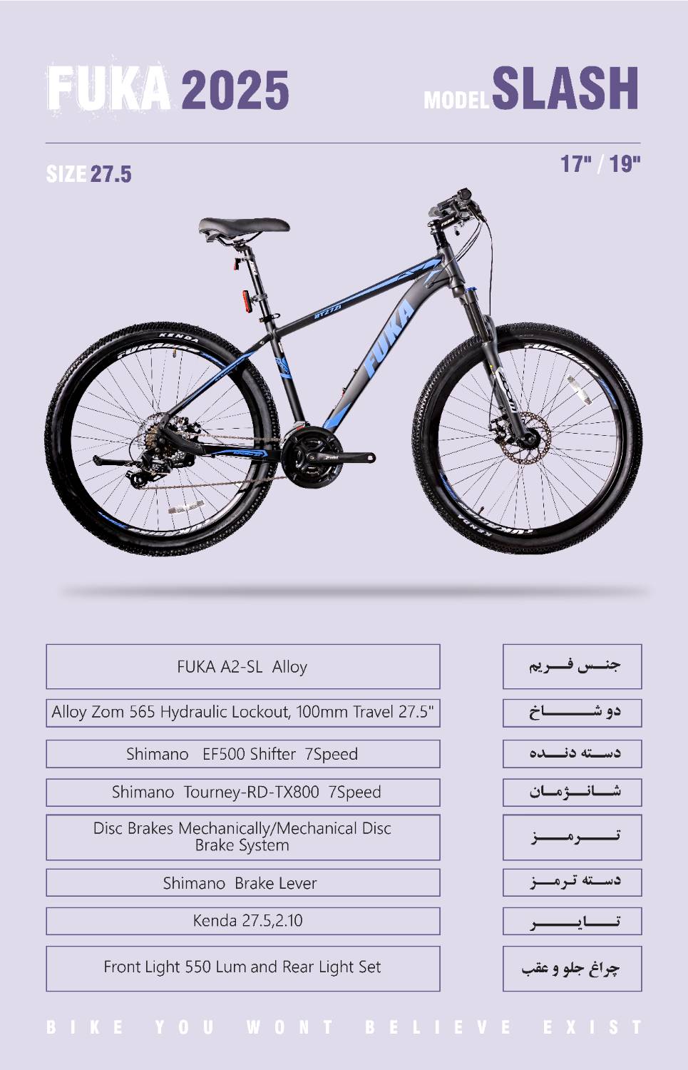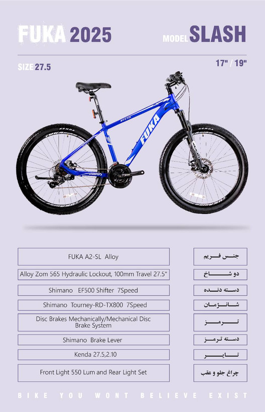 فریم دوچرخه های فوکا با بهره مندی از جدیدترین متد مهندسی فریم به گونه ای طراحی شده است که موقعیت ایرودینامیک بیشتر و جریان هوای بهتر در بدنه ایجاد شود. استفاده از آلومینیوم 6061در ساخت فریم این دوچرخه علاوه بر ایجاد وزنی سبک، باعث افزایش مقاومت این دوچرخه در برابر ضربه می شود. دوچرخه آلومینیومی MERIT 27/5 ، یکی از محصولات بی نظیر برند معتبر FUKA است. سیستم دنده 3 به 9 شیمانو Alivio SL ، ترمز دیسکی شیمانو MT200 و لاستیکهای 27.5 برند شوالب، این دوچرخه را به گزینه کاملا مناسبی برای مسیرهای سنگلاخی، شیبدار (حتی شیب تند) و پرش (Jump) نموده است.یکی از ویژگی های بی نظیر دوچرخه فوکا در مدل های 2024 نسبت به مدل های 2023، بهره مندی از قطعات تماما بلبرینگی در لوازمی چون: توپی تنه، توپی های جلو و عقب، هدست (کاسه دوشاخ) و پنجه رکاب ها که تاثیر بسزایی در روان بودن و راحتی رکاب زدن دوچرخه سوار دارد. دوچرخه های 2024 فوکا به دلیل طرحی مخروطی شکل قسمت پیشانی دوچرخه، امکان ارتقای ست لوازم دوچرخه را به رده بندی بالاتر را به سادگی فراهم کرده است. برند فوکا با وسواسی کم نظیر، تک تک قطعات این محصول را از میان بهترین قطعات تولیدی توسط برندهای معتبر انتخاب کرده است تا در کنار امنیت، طعم هیجان و لذت را به رایدرهای حرفهای بچشاند. خرید این دوچرخه حرفهای به بانوان و آقایانی که میخواهند تجربه جدیدی از دوچرخه سواری کوهستان داشته باشند، پیشنهاد میشود.
